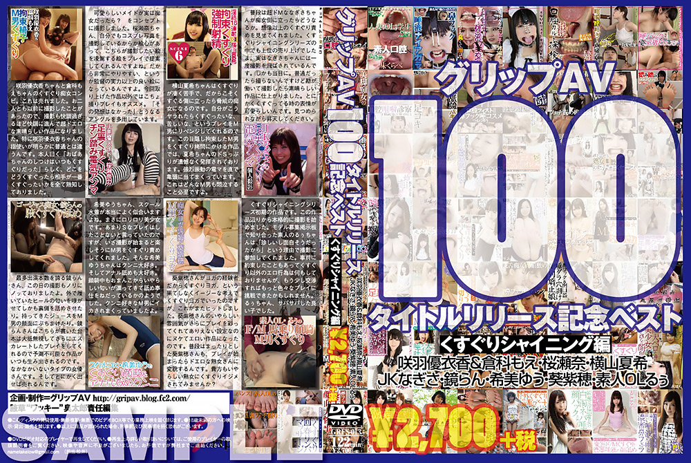 グリップAV100タイトルリリース記念ベストです。腋草“ワッキー”臭太郎セレクトのくすぐりシャイニング編です。売れた作品、印象に残った女の子の作品をセレクトしました。グリップAVの歴史が詰まっております。これを機会にぜひ、ご覧になってください。
