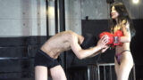 スパーリングをすることになったかなめ様。まずは、ひさきが相手になります。ボディの連打であっけなくダウンを奪います。戦意を喪失したひさきを無○○り立たせてミドルキック連打、ひざげり等で攻めます。猛攻を受け、ひさきはたまらずクリンチしようとしますがノックアウトされます。倒れたひさきを踏みつけ、マウントパンチでとどめを刺します。全然物足りなかったかなめ様。次は港区サンドバッグと勝負します。余裕を見せる港区サンドバッグでしたが、ボディや顔への激しいパンチの連打で襲いかかるかなめ様。ガードの上からも顔を狙って的確にパンチを当てダウンを奪います。パンチだけではなくキックやスリーパー等のシメ技でも攻めます。途中、かなめ様が口に含んだ水を飲ませる等のご褒美もあります。果たして、港区サンドバッグは、かなめ様の怒涛の攻撃をジムのメンツをかけて耐えきることができるのか。キックボクシング経験者のかなめ様の激しい攻撃と途中に見せるM男を興奮させる発言や仕草をお楽しみいただける作品となっております。 ※本編中に映像と音声のずれやノイズが発生する箇所がありますが、オリジナル・マスターに起因するものです。あらかじめご了承ください。